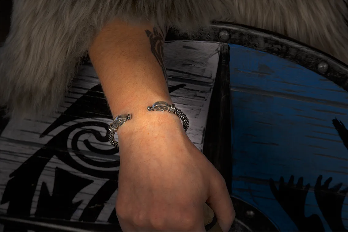 Håndlavet armbånd med et maskulint og råt præg, inspireret af den legendariske vikingekriger Ragnar Lothbrok fra serien Vikings. Armbåndet er designet med tanke på den nordiske arv, og dets robuste detaljer udstråler styrke og mod, der passer perfekt til enhver moderne viking.